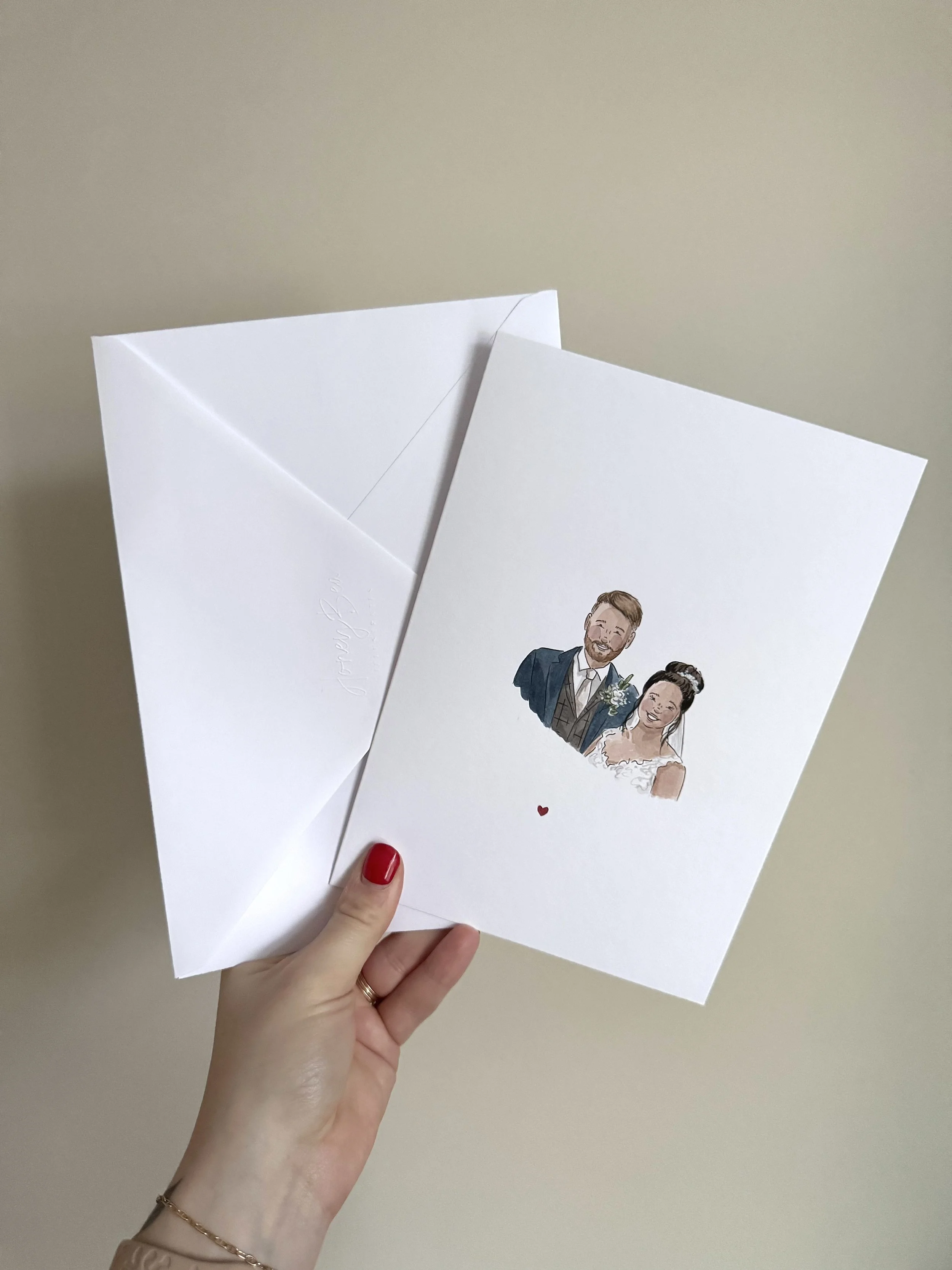 Say Congratulations! In the most unique way with a hand painted illustration of the happy couple. Perfect to be framed and kept forever.